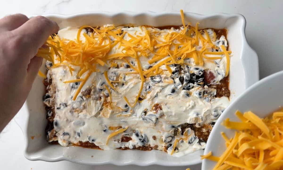 - STEP 3: Top with cheese: Cover with cheddar cheese.