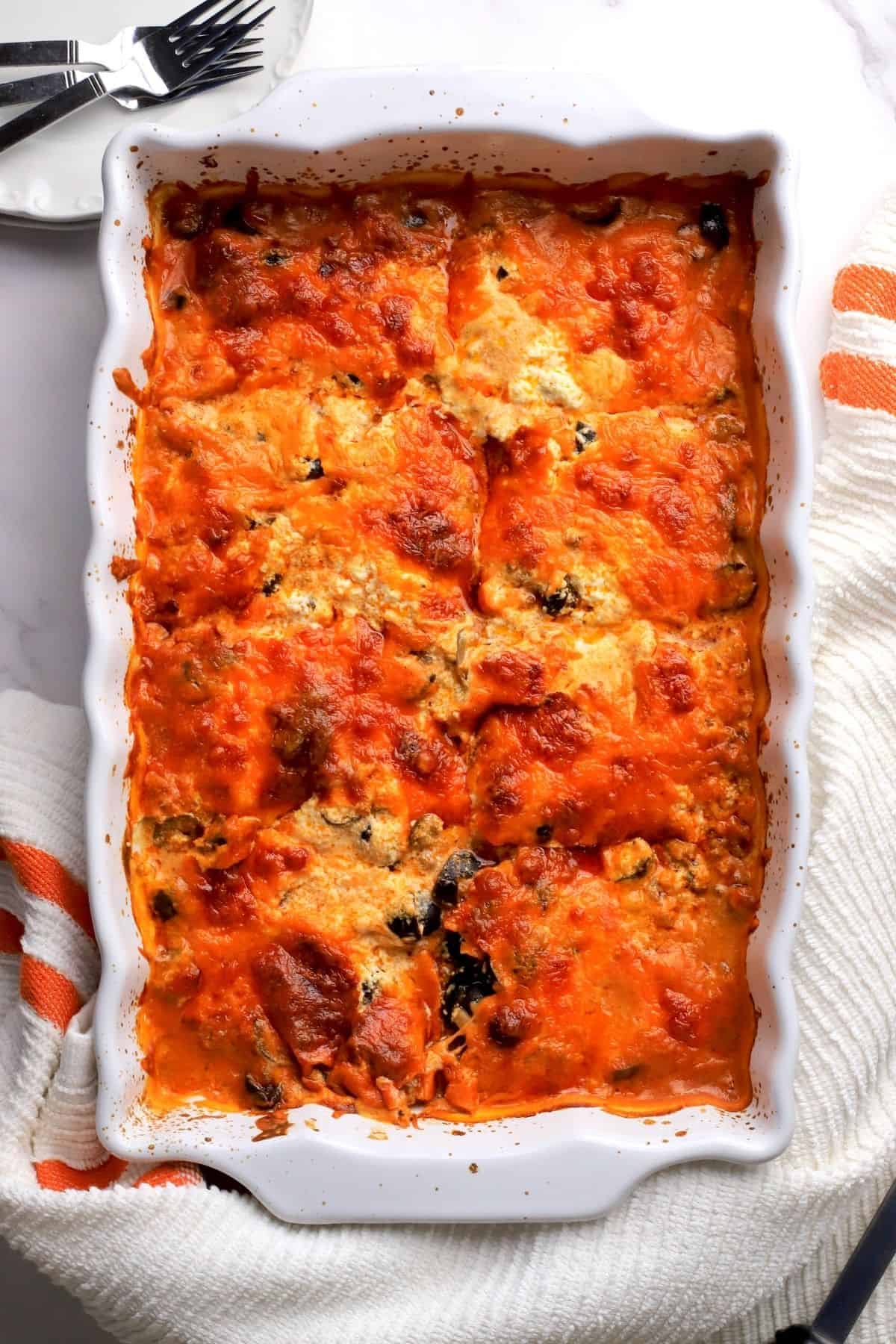 Yes. Swap the ground beef for cooked lentils, crumbled tofu, or a plant-based meat substitute. Follow the same layering and baking instructions.